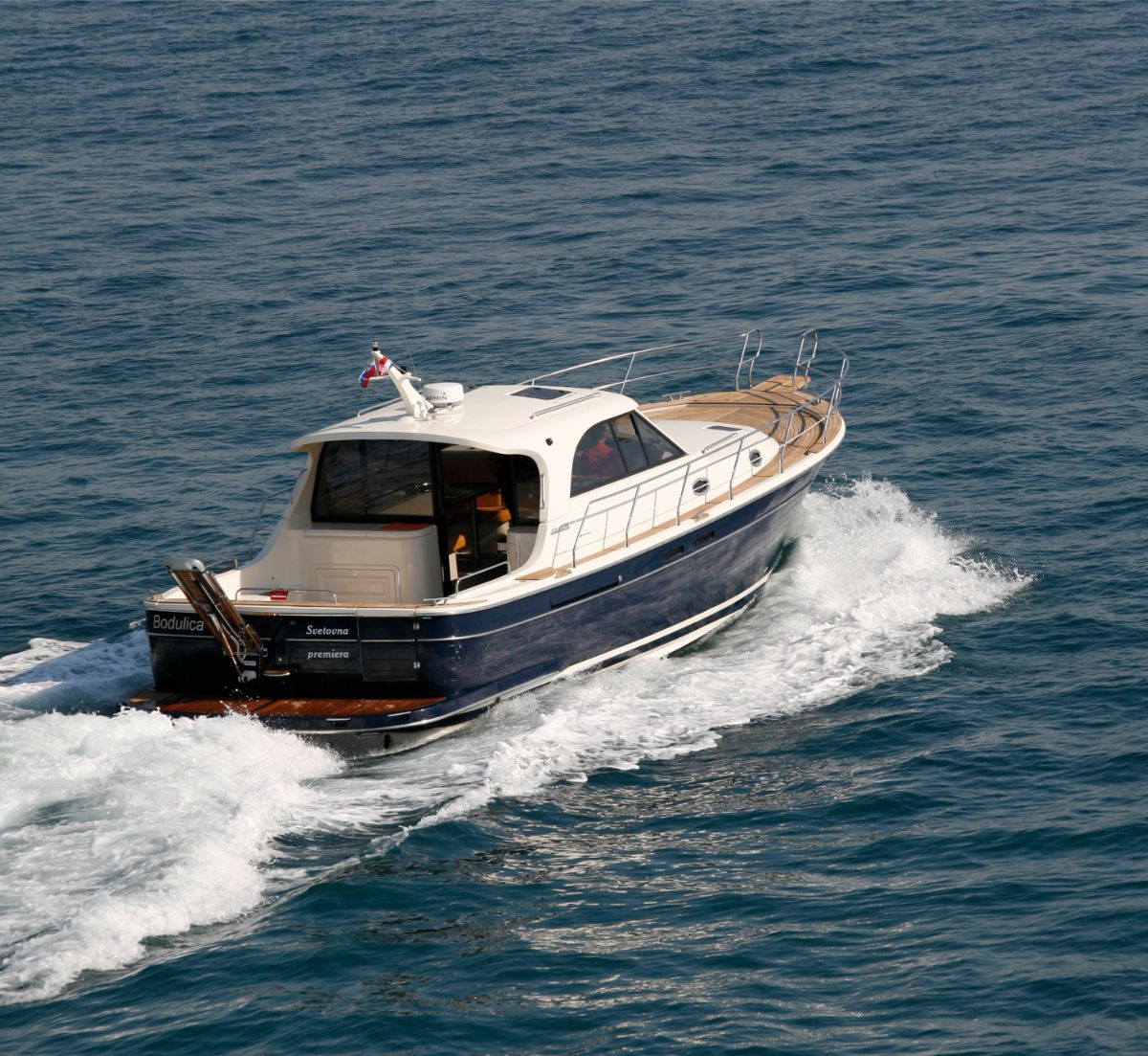 In the marinas of the Adriatic people still tend to stop us and tell us that it is “the best boat in the Adriatic”. A very specific hull form (a planing hull with all the elements of a semi-displacement hull form that we could incorporate). The cruising speed of about 20 kn, ideal for the Adriatic. Small engines, ample space, well balanced luxury, easy to build. Ten units were sold even before the prototype was completed, which was bordering on a miracle. Then the 2008 crisis hit, and the project never fully recovered thereafter.