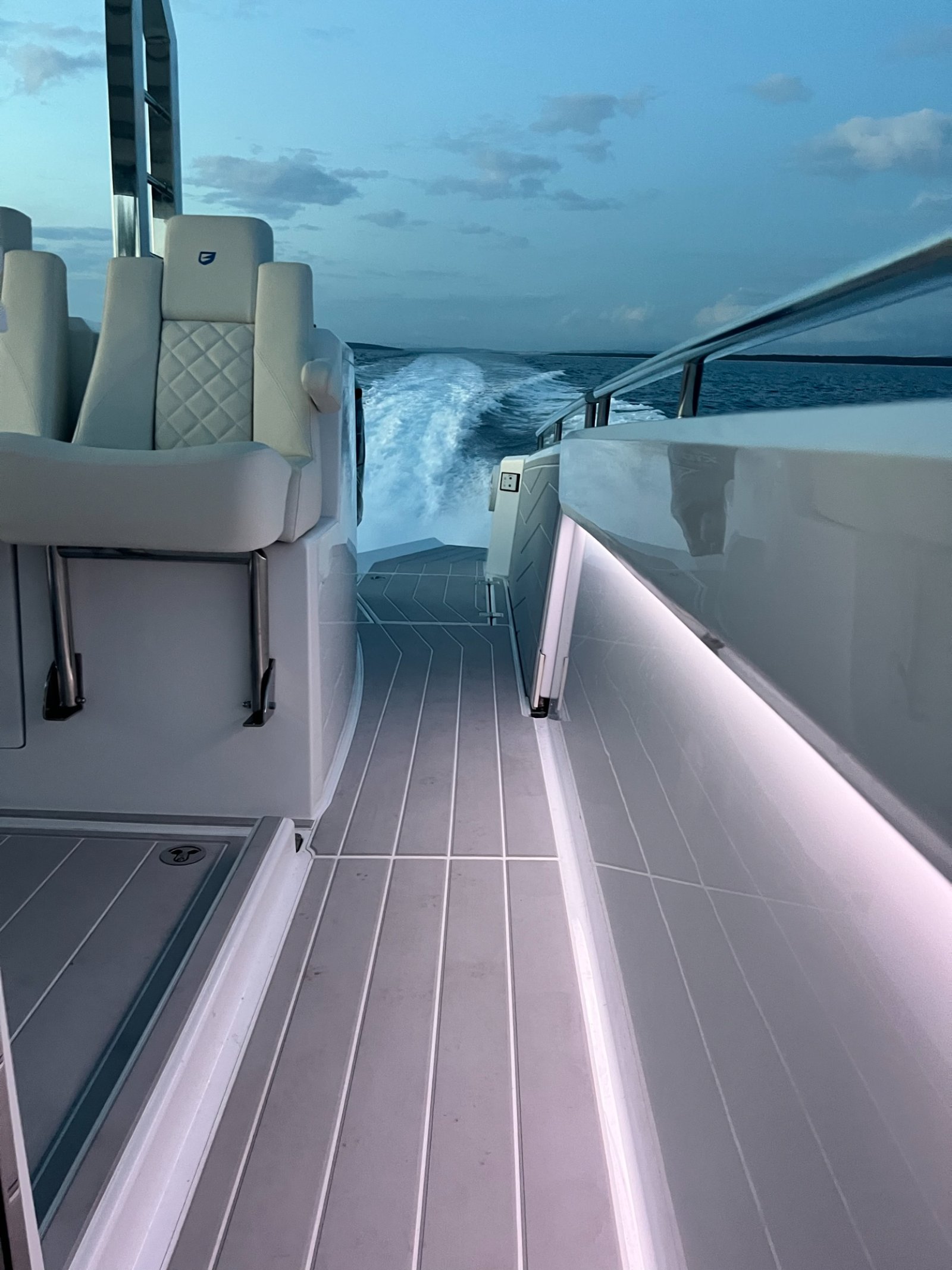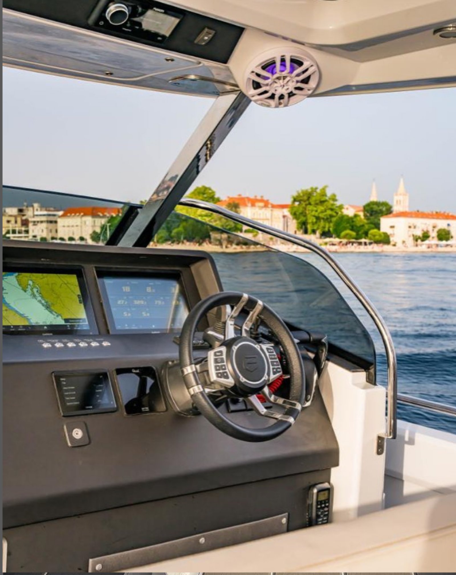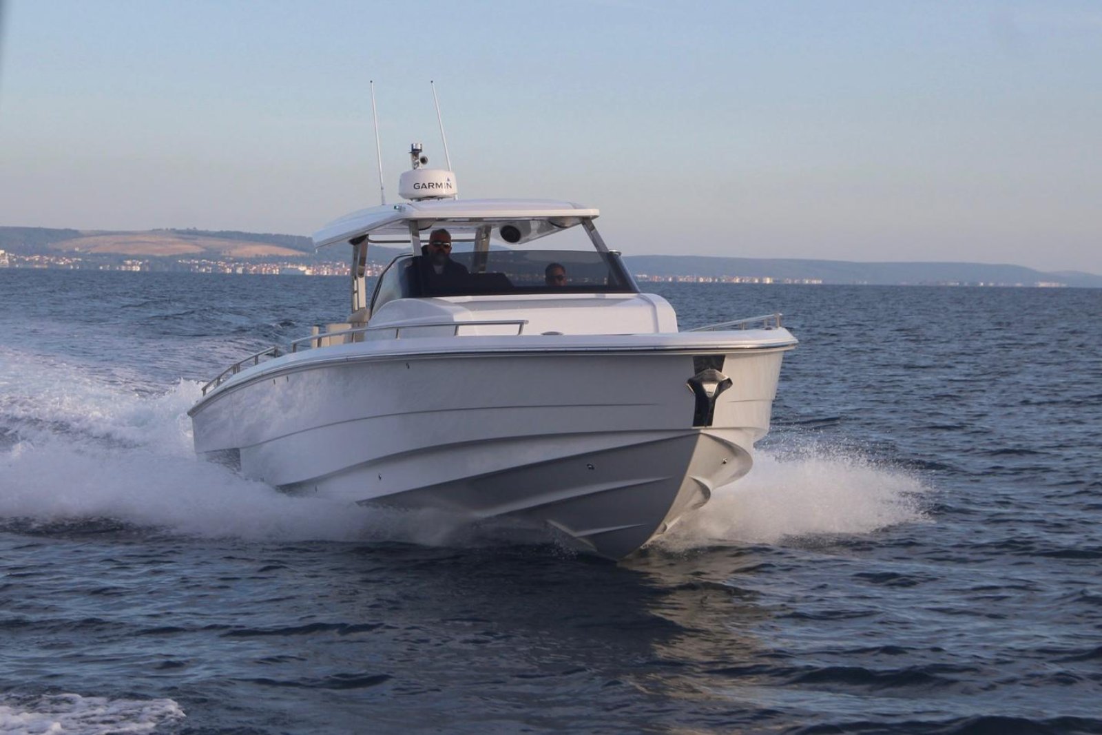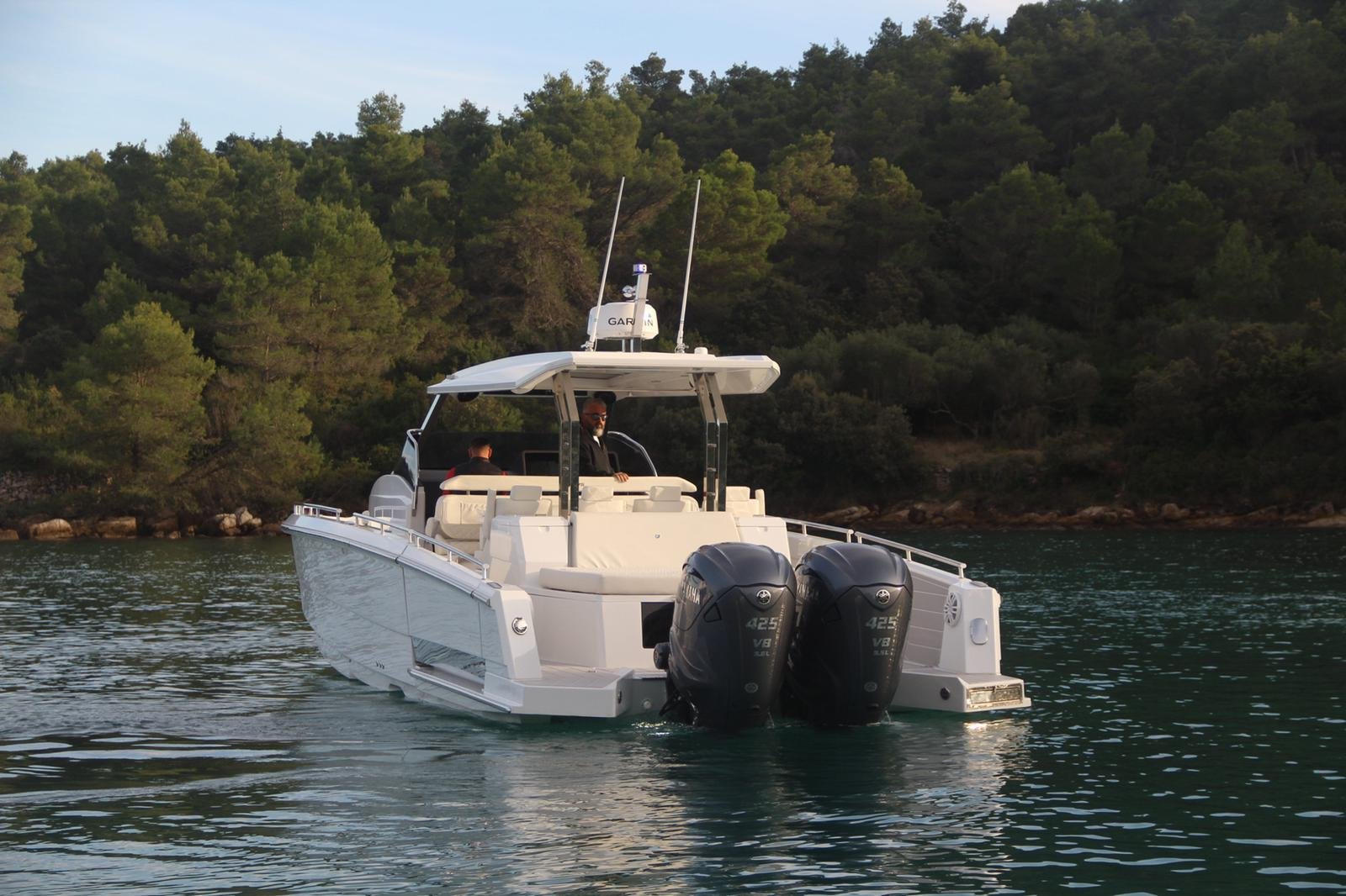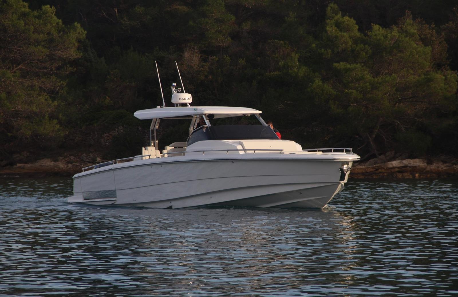 A typical modern big dayboat, suitable for yacht tenders. From the concept sketches to the prototype in twelve months. Handmade lamination (higher weight), a very fast boat, remarkable performance. Excellent communication with the customer who had never been in manufacturing but had been in yachting for years. Some styling details are not our first choice. The stepped hull tends to be more challenging than the classic fast boat hull forms due to tiny details affecting the efficiency of the hull. Small mistakes can cause big problems at high speeds. Our knowledge of ship hydrodynamics proved to be more than theoretical.